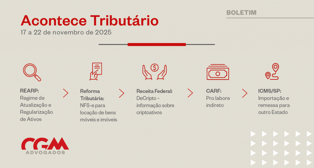 Este boletim tem propósito meramente informativo e não deve ser considerado a fim de se obter aconselhamento jurídico sobre qualquer um dos temas aqui tratados. Para informações adicionais, contate os líderes do Time Tributário. CGM Advogados. Todos os direitos reservados.