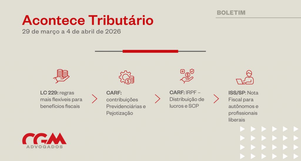 Este boletim tem caráter meramente informativo e não deve ser considerado para obter aconselhamento jurídico sobre quaisquer dos temas aqui tratados. Para informações adicionais, contate os líderes do Time Tributário. CGM Advogados. Todos os direitos reservados.