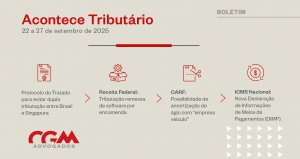 Newsletter 03/10/2025 Acontece | Tributário 03/10/2025 Acontece | Tributário 22 a 27 de setembro de 2025 Federal Promulgado protocolo que altera acordo fiscal entre Brasil e Singapura Em 22/9,... Tributário