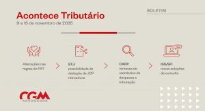 Newsletter 21/11/2025 Acontece | Tributário 21/11/2025 Acontece | Tributário 9 a 15 de novembro de 2025 Federal Alterações no PAT – Programa de Alimentação do Trabalhador Em 12/11, foi... Tributário