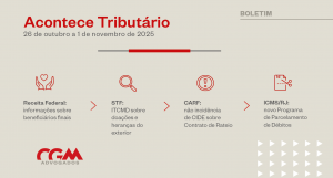Newsletter 23/10/2025 Acontece | Tributário 23/10/2025 Acontece | Tributário 12 a 18 de outubro de 2025 Federal Alteração das regras de multa sobre débitos em parcelamento Em 17/10, foi... Tributário